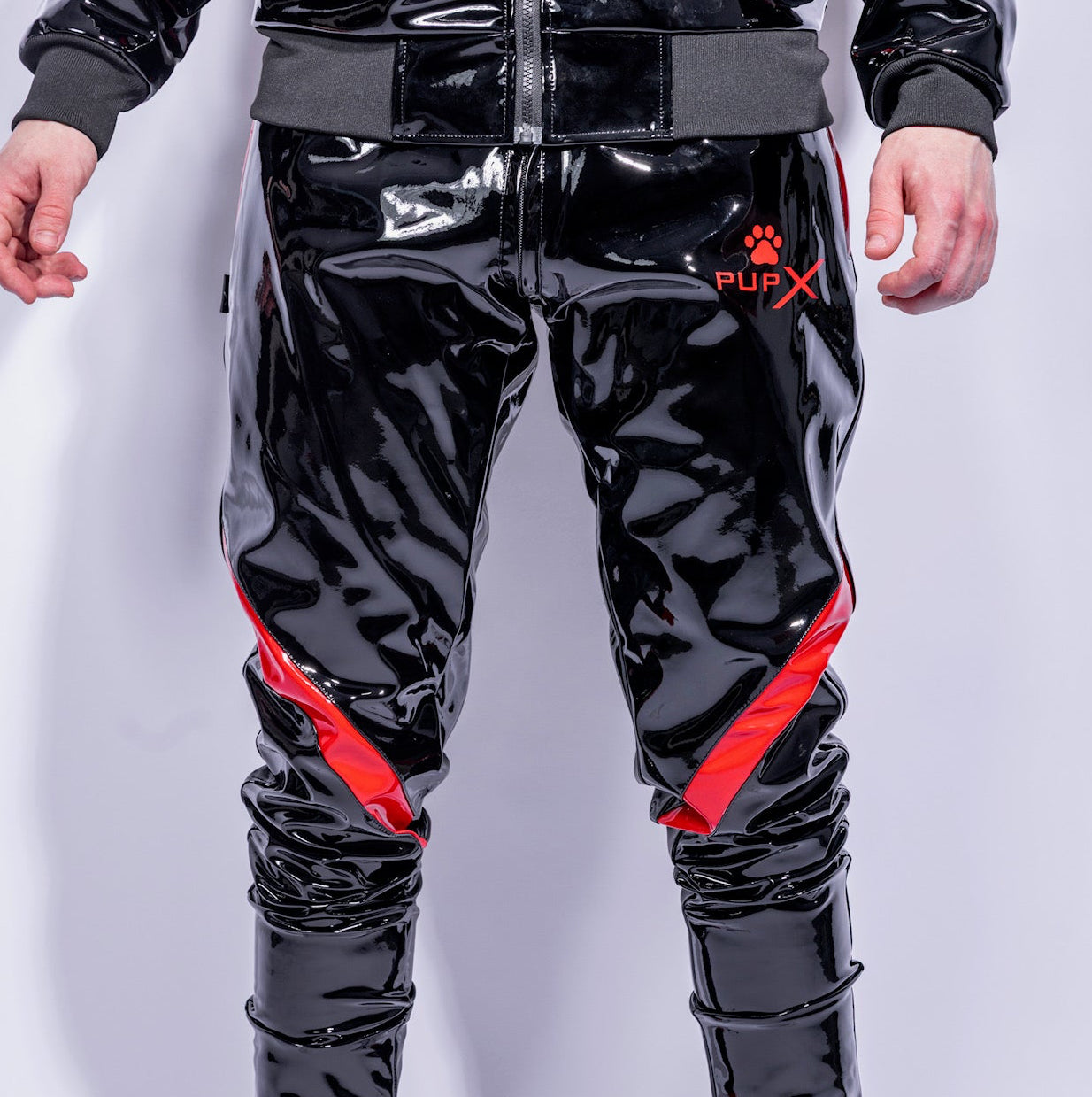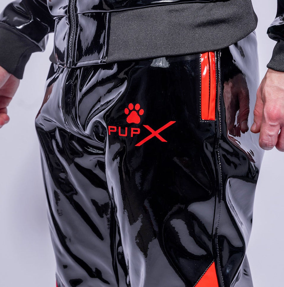 The BARK Pants | BLACK/RED | PVC PRO lock your lower body into glossy fetish shine. Outside: ultra-glossy PVC PRO that reflects light like liquid. Inside: shiny red NYLON that presses against your skin and turns heat into energy.