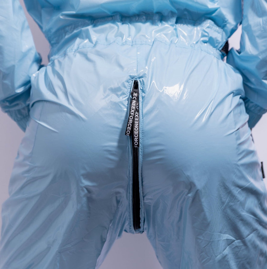 Constructed entirely from NYLON PRO, inside and out, this dual-layer suit amplifies your presence with every move. Shiny. Sleek. Controlled.
